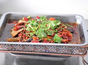 千层饼,又叫“瓤子饼”,是山东东平接山乡一带的名吃之一,历史上以鄣城村路边客栈制作的风味最美。千层饼外边用一层面皮包起来,而内有数十层,层层相分,烙熟后,外黄里喧,酸软油润,热食不腻,凉吃不散口,且味道香美。千层饼外面洒上一层芝麻,熟后苏香可口。