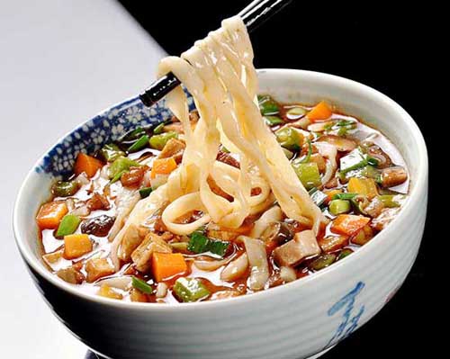 陕西臊子面吃口柔韧滑爽,它的最大特点是面条细长,厚薄均匀,臊子鲜香,面汤油光红润,味鲜香浑厚而不腻。臊子面以岐山哨子面乡土风味尤为浓厚,以酸辣著称。经过不断的发展,臊子面到现在,品种已多达数十种,以薄、筋、光、汪、酸、辣、香等,吃口柔韧滑爽。