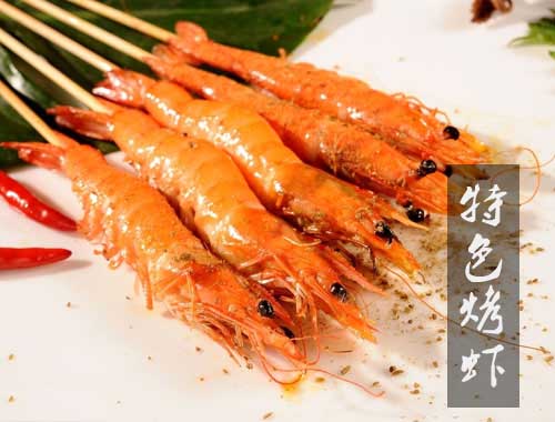 烤海鲜,烤虾,烤鱼,烤羊排,烤羊腰,牛肉串,猪肉串,鸡腿、鸡翅、鸡爪、鸡肾、羊肉串、鱿鱼须、鱿鱼片、小鲫鱼、河虾、火腿肠、玉米、茄子、韭菜、平菇、辣椒、豆腐串、烤牛板筋等。
