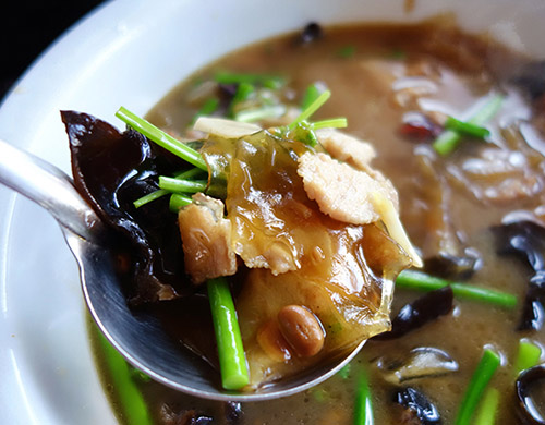 粉皮靠肉是一款家常菜品,制作原料主要有猪肉、粉皮、时令蔬菜等。